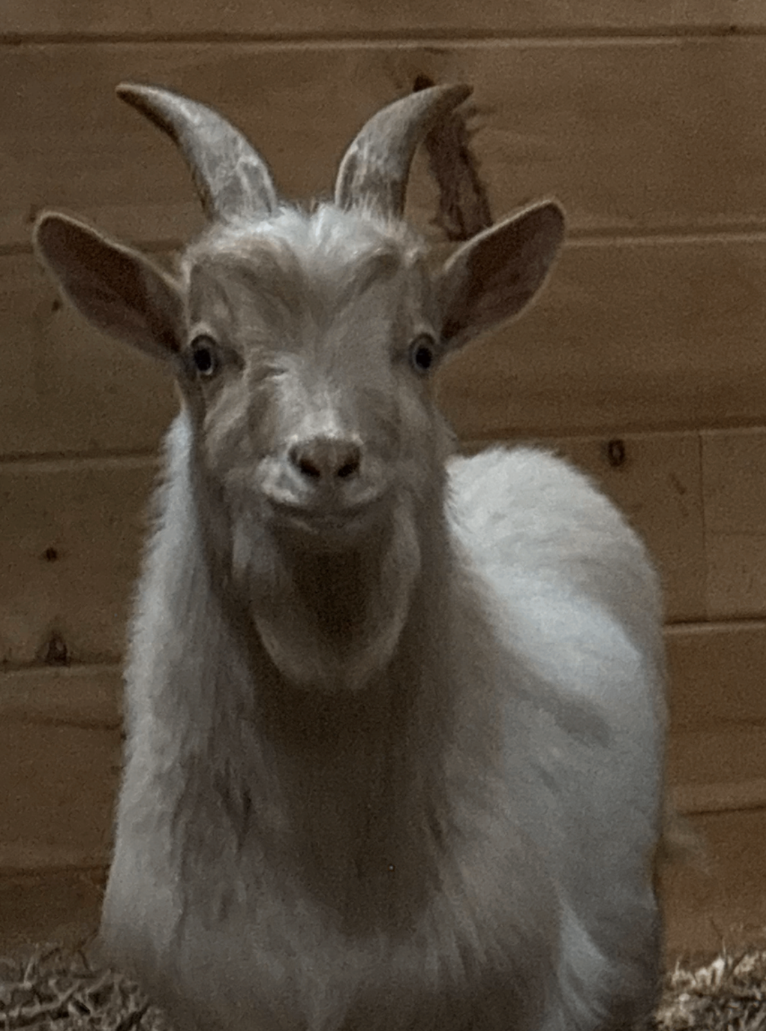 Klaus has been curious, but cautious so far, and never far from Ellie. He’s so small he’s able to hide behind her, and if it weren’t for his horns, you’d never know he was there! It will be fun to learn more about his personality as we get to know him.